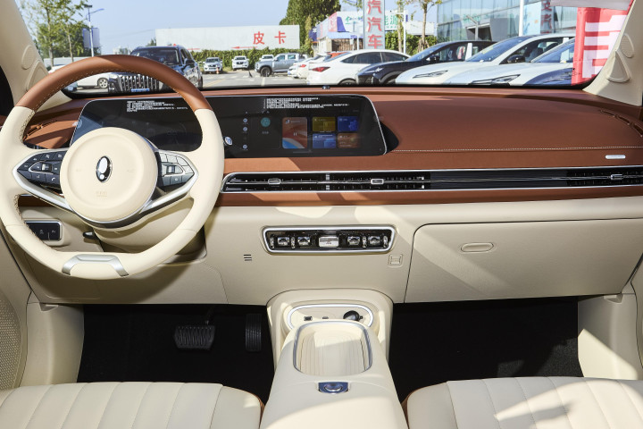 坐进车内,“国风美学” 内饰让人眼前一亮:青罗碧、石青翠、檀韵棕三种配色源自东方国画,雅致温润不压抑。仪表台用 3D-Mesh 包覆工艺,绗缝纹理精细,没有粗糙边缘;座椅、仪表台等常接触部位用 Micro Cloud 多光感亲肤表皮,触感像麂皮绒毛般柔软,还带柔和哑光效果,不会因反光影响驾驶视线。
